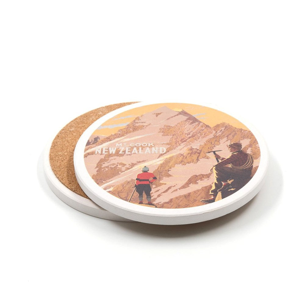 Ceramic coaster with cork back. Size: 10cm diameter x 0.6cm.