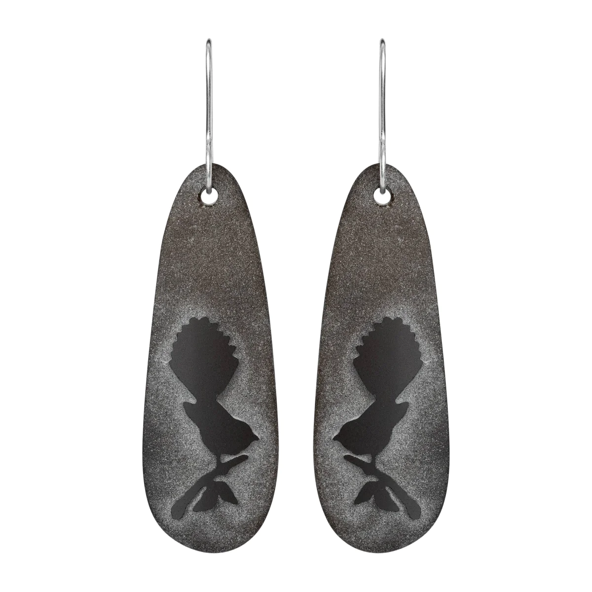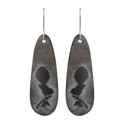 We've taken our reduce, reuse, recycle ethics to another level with this design, actually re-using part of the sticker for another design that's usually discarded! The fantail itself stands out visually and 3 dimensionally, with the negative space around it being sandblasted. Made right here in our workshop in Golden Bay, including the Recycled Sterling Silver Hooks.