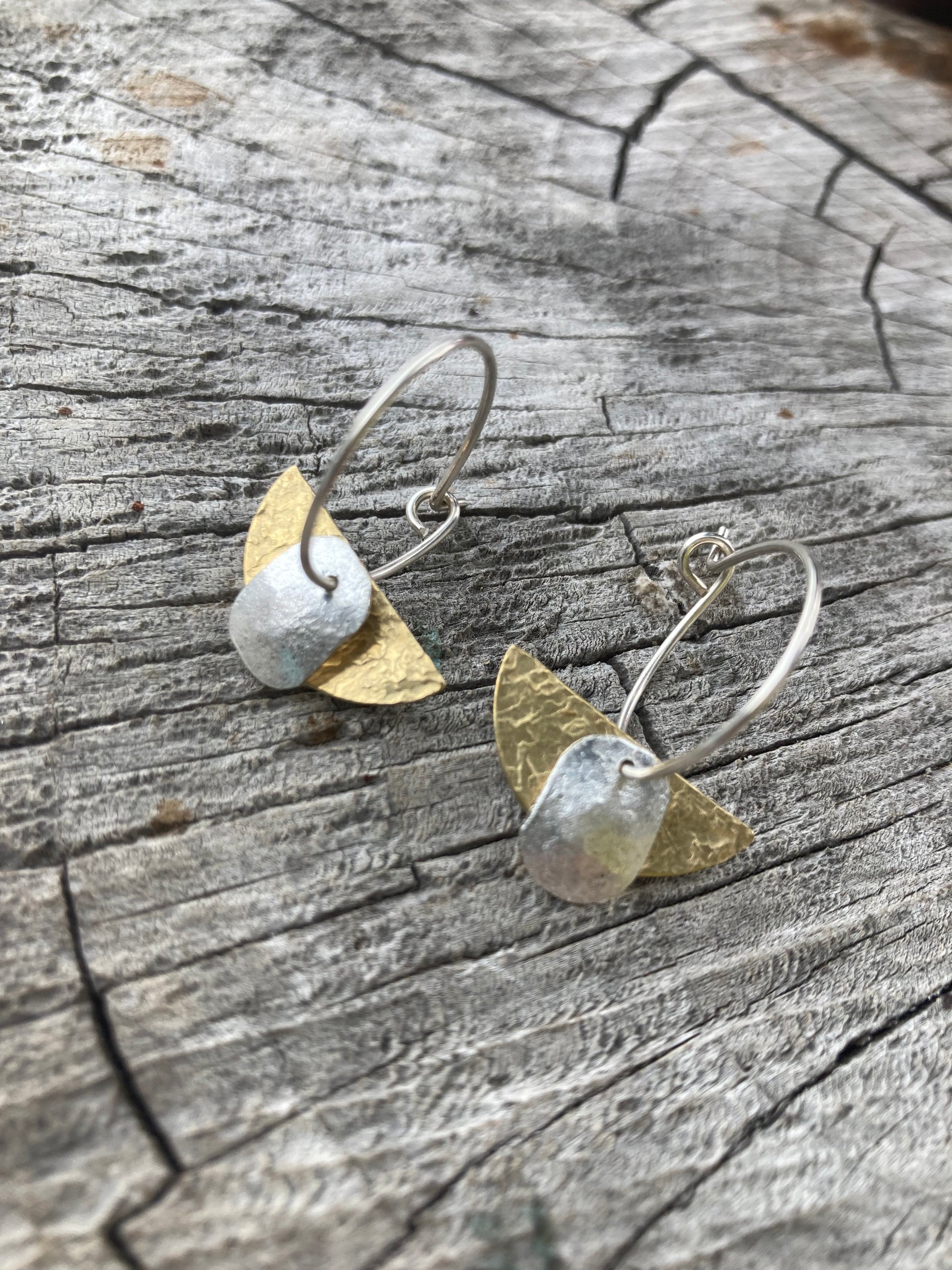 Originally from France she moved here in 2019 and studied at the Dunedin School of Art. Her jewellery is inspired by the organic aesthetic of the Abel Tasman region. By using different materials like sterling silver, brass and copper, she reflects the natural colours of the sandy beaches, low grasslands and native forests of the area. Her abstract way of showing the connection to nature by using circular forms also aims to represent the cycle of life and changes of the seasons deeply felt in New Zealand.