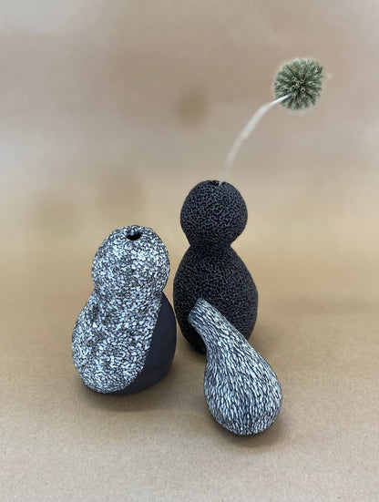All pieces are hand built using a variety of clays, the organic shapes and and irregularities are all part of the works
