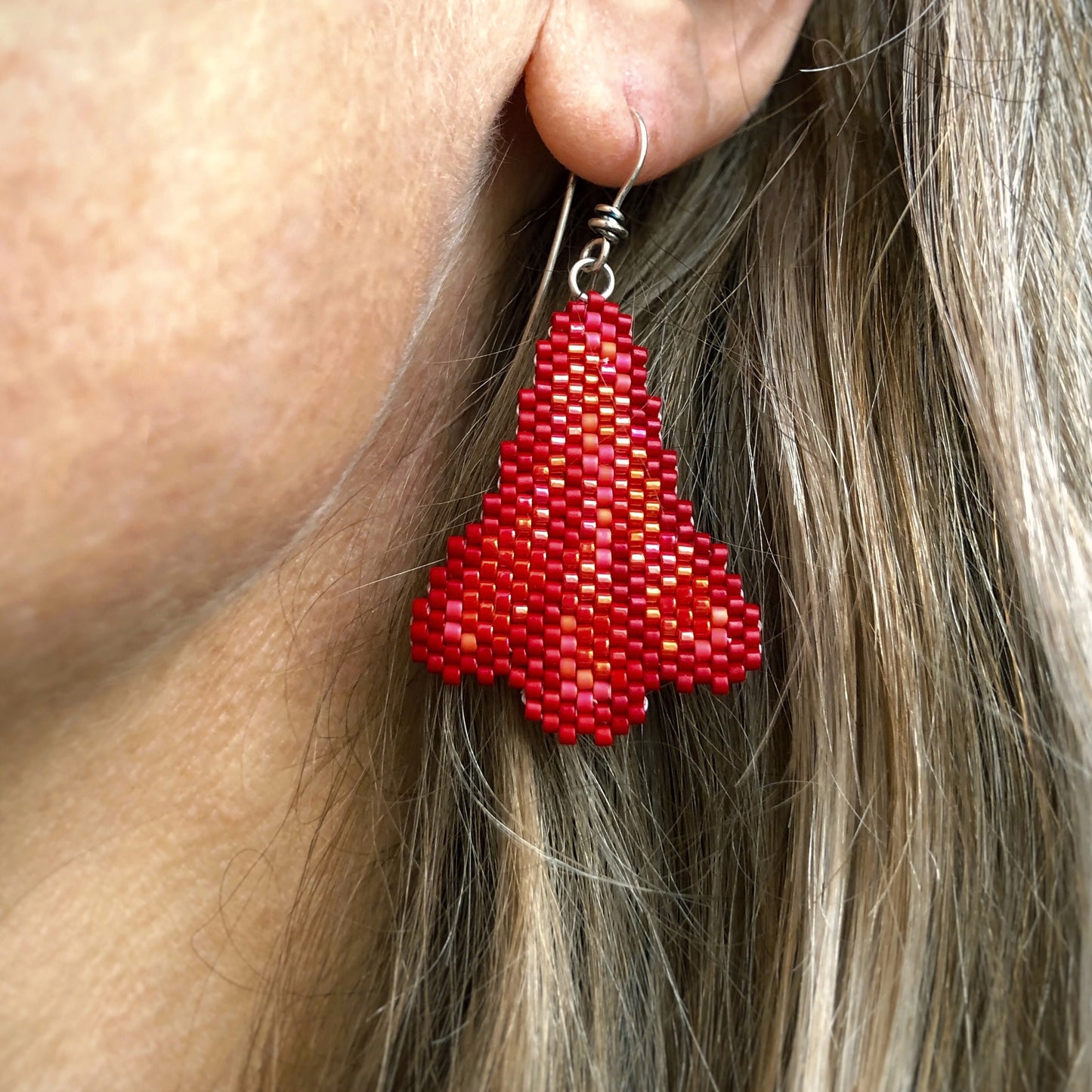 All earrings are drawn and woven by Charli. Created using the worlds finest Miyuki Delica seed beads from Japan and the longest lasting microfused braided thread to stitch them together. Woven in peyote and brick stitch to create these original, eye catching earrings.