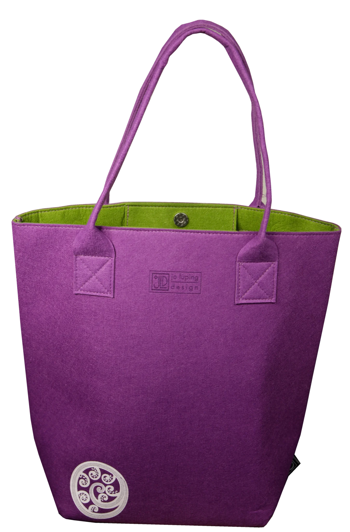 The inside of each tote is a vibrant colour, complimenting the screen printed design on the outside. The inside of the tote has a magnetic dome closure and 2 free-hanging pockets.