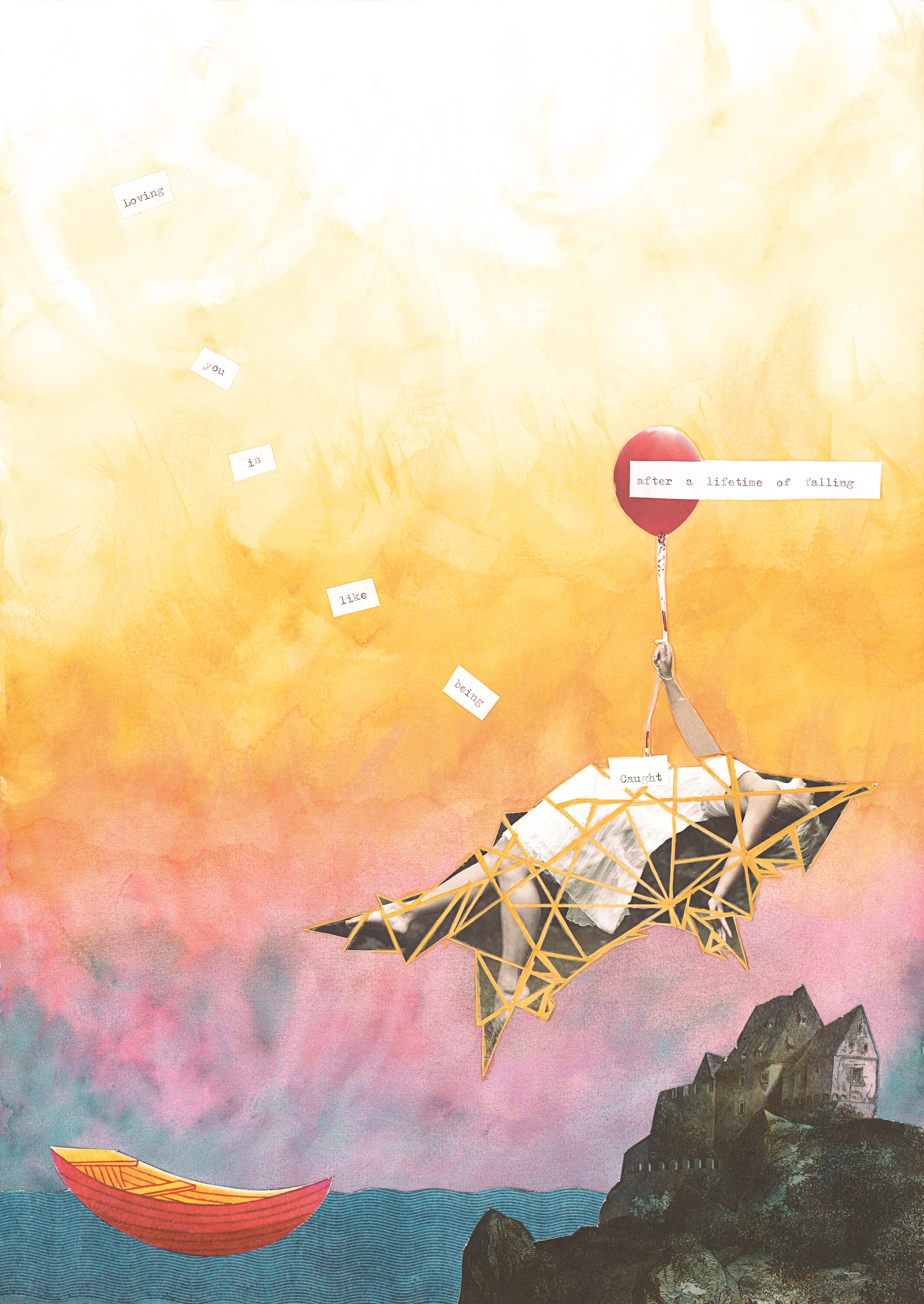 Original collage poetry artwork Poem typed on a vintage Olivetti Lettera 32 typewriter Images sourced from vintage children's books and magazines Made using the traditional cut-and-paste collage technique