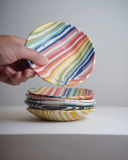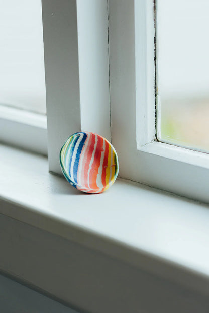 These are crafted by layering coloured clay to create unique patterns in every piece.