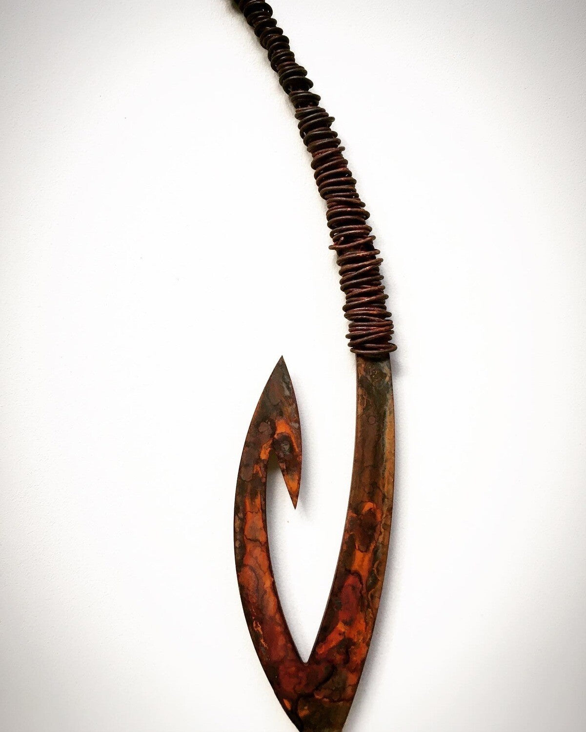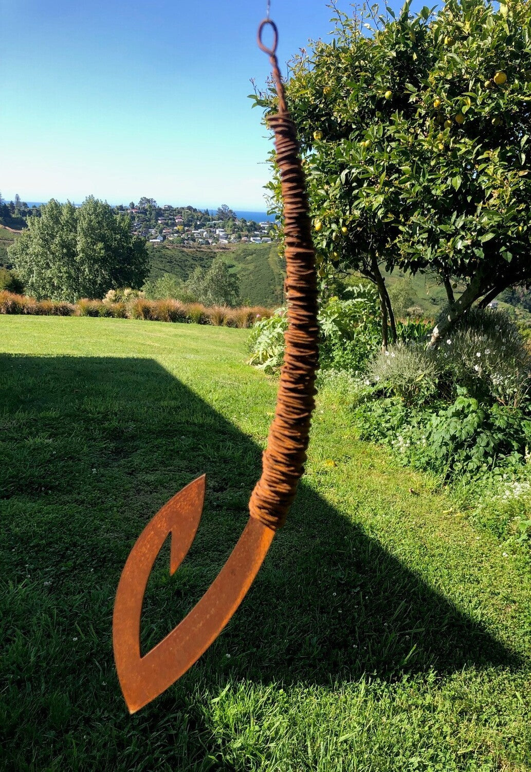 Rusty Matika - Spinning Corten Fish Hook by Nelson artist Brendan and Jane Harley of Grounded Art