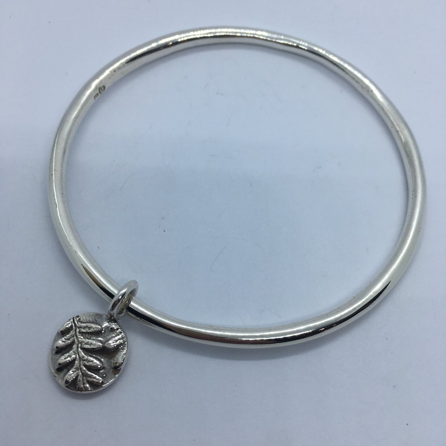 Silver Fern Charm Bangle by Jewellery Artist Hannah Clayton - Whalebird Jewellery