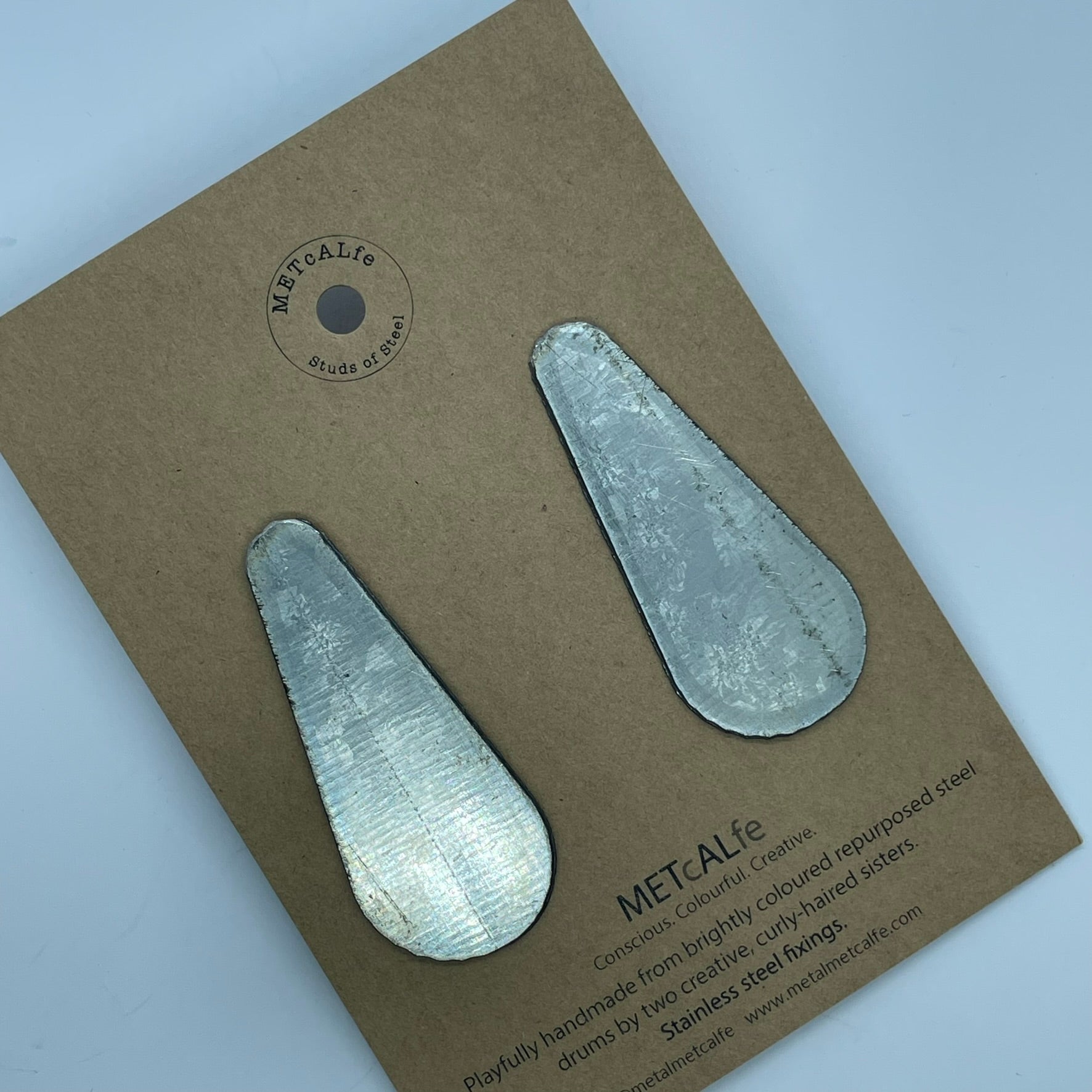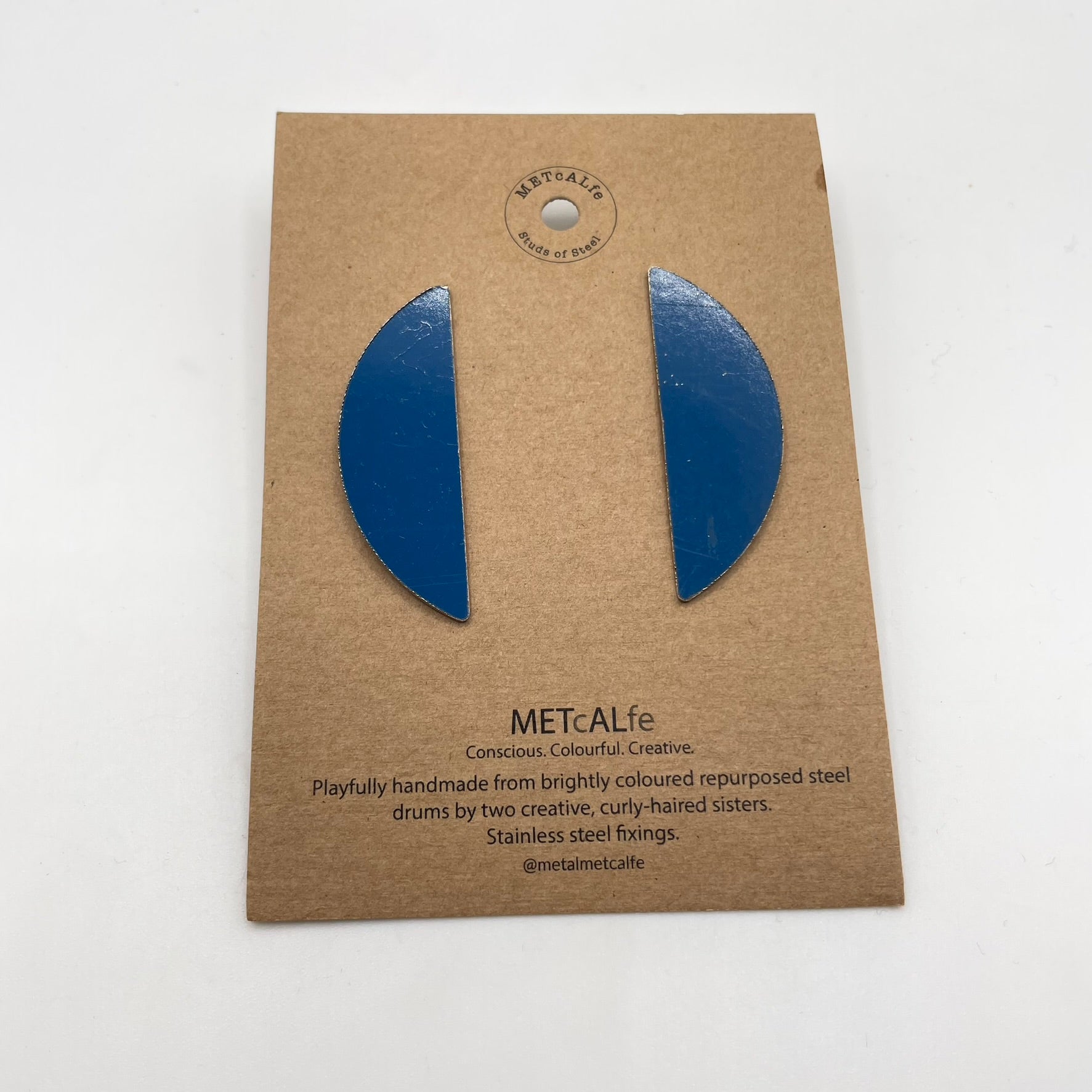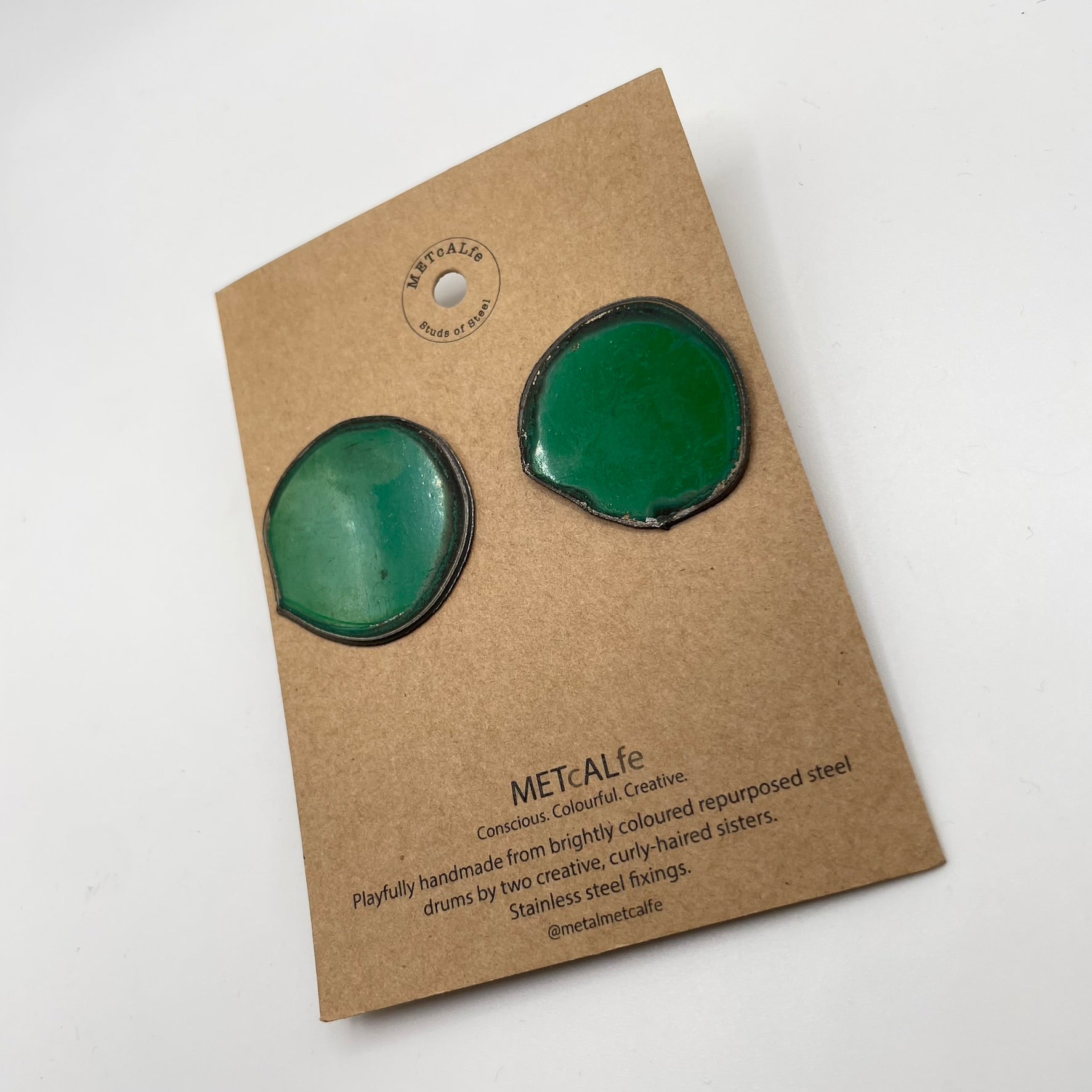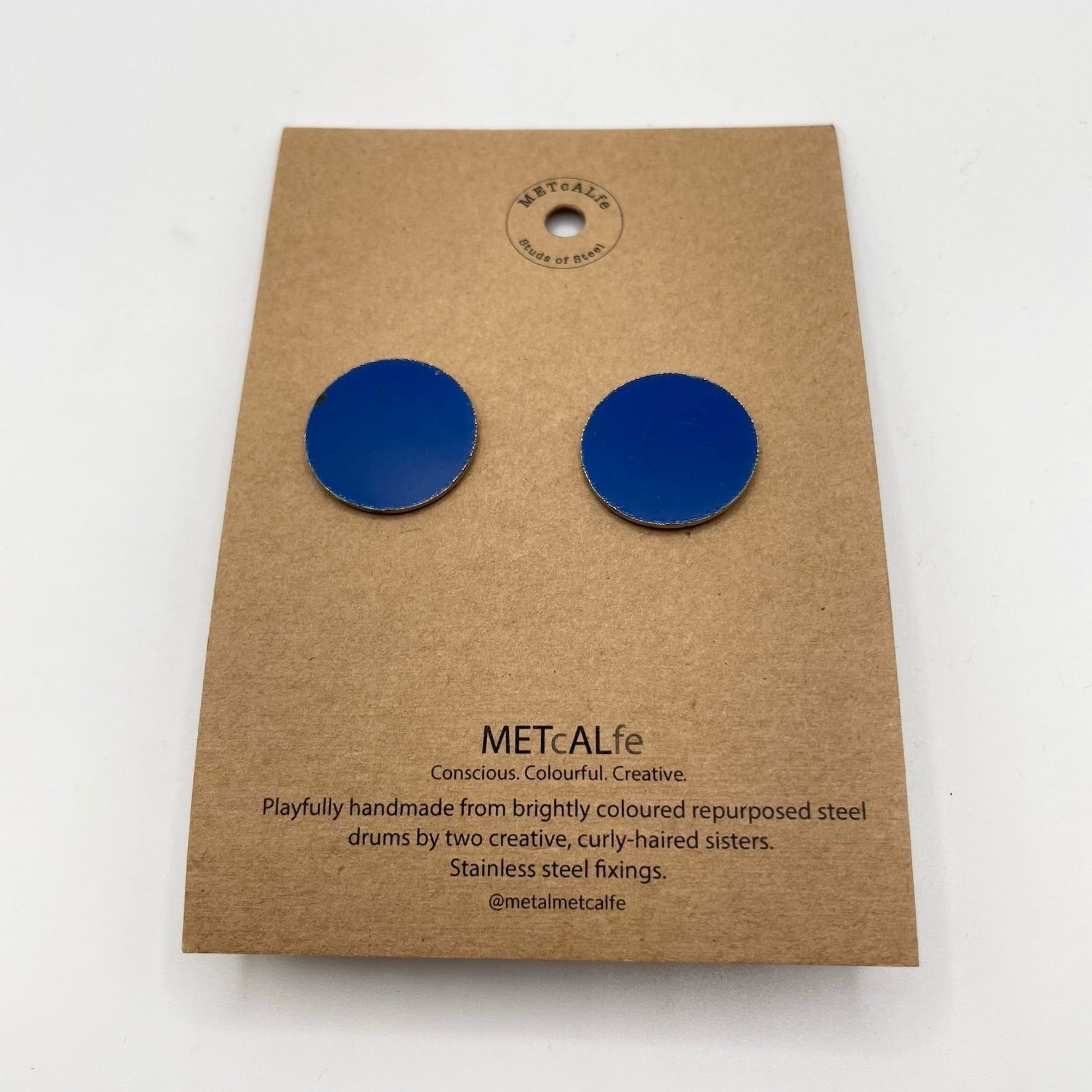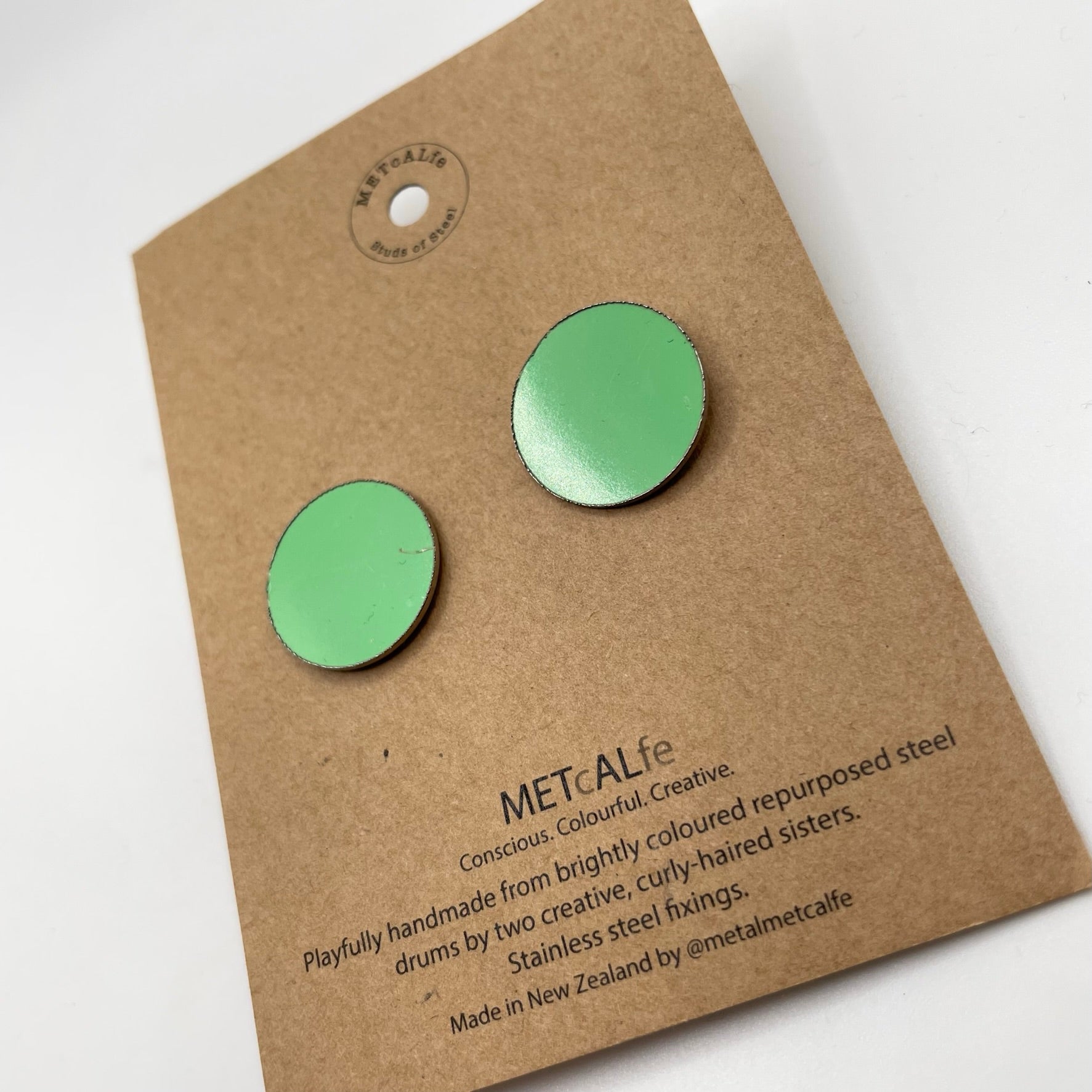 All the Studs of Steel are made by the Amy and Katie from our repurposed steel drums. These drums have travelled thousands of miles around our little planet, and ended up in Hawke's Bay, New Zealand where they give them a second life of travel...on your ears!