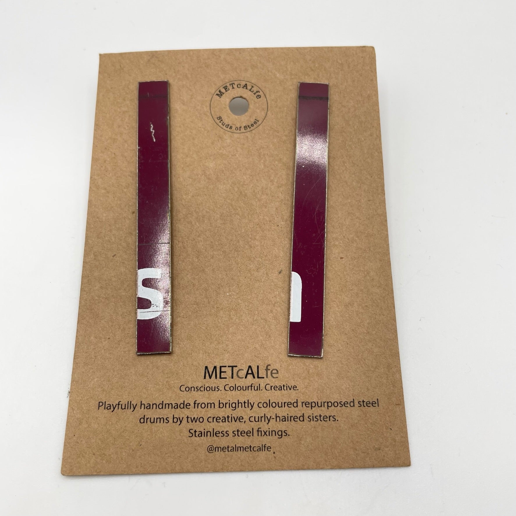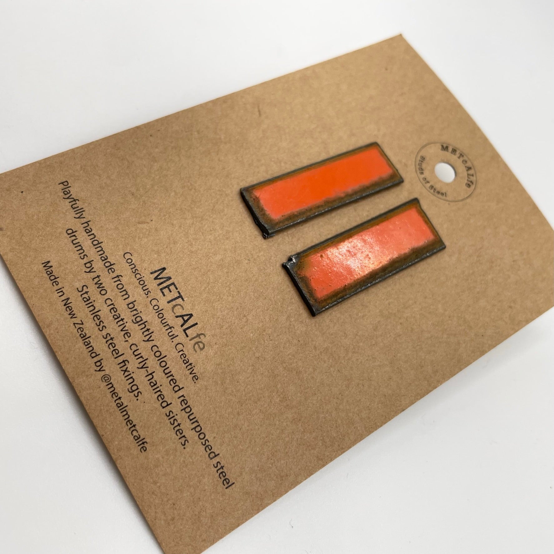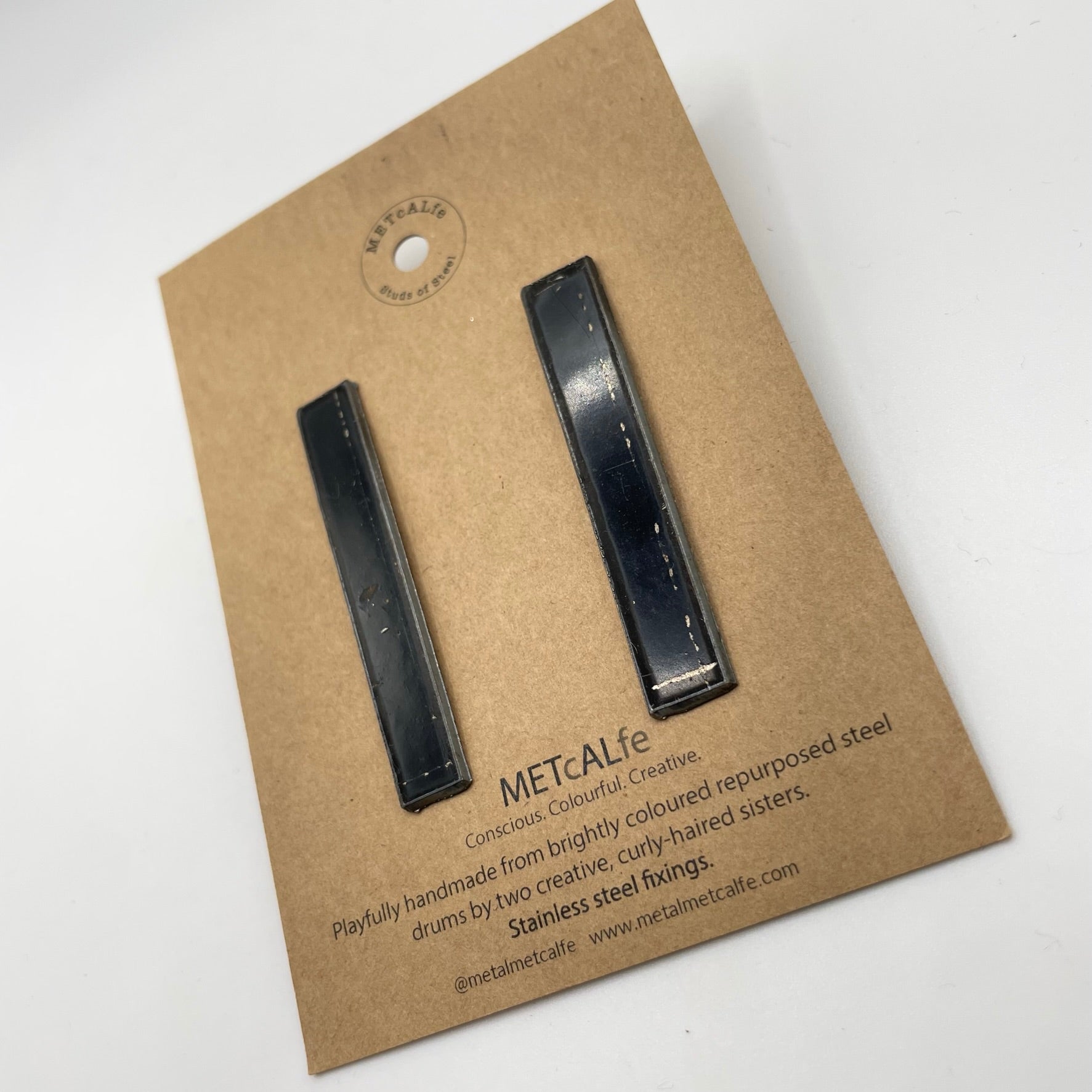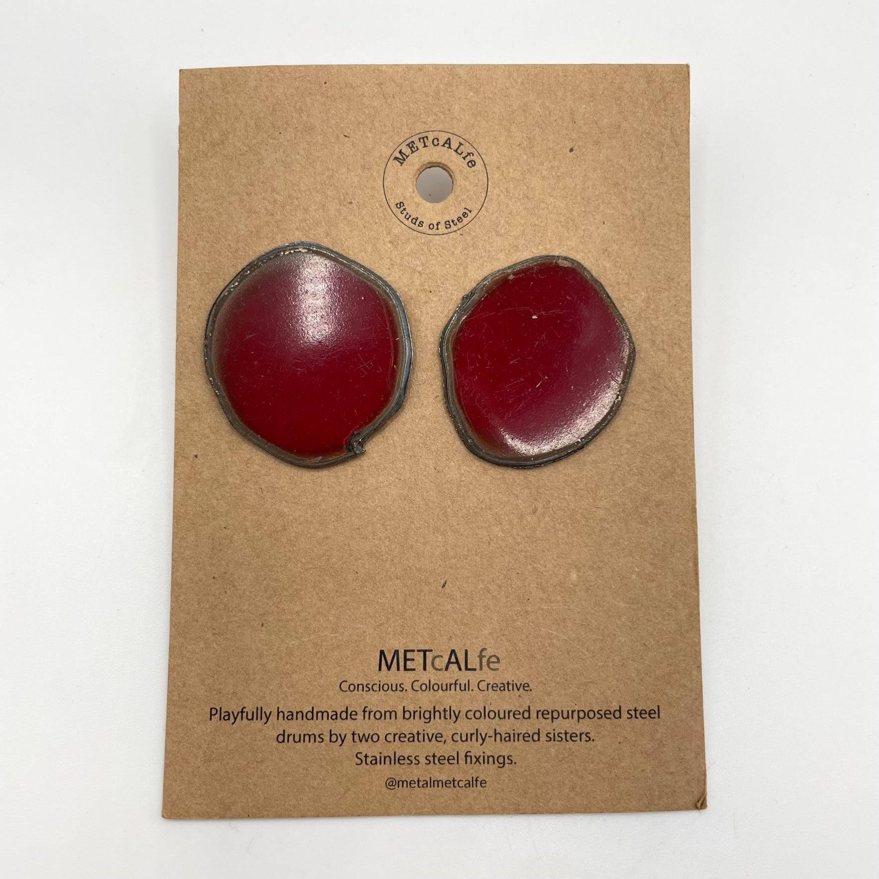 All the Studs of Steel are made by the Amy and Katie from our repurposed steel drums. These drums have travelled thousands of miles around our little planet, and ended up in Hawke's Bay, New Zealand where they give them a second life of travel...on your ears!