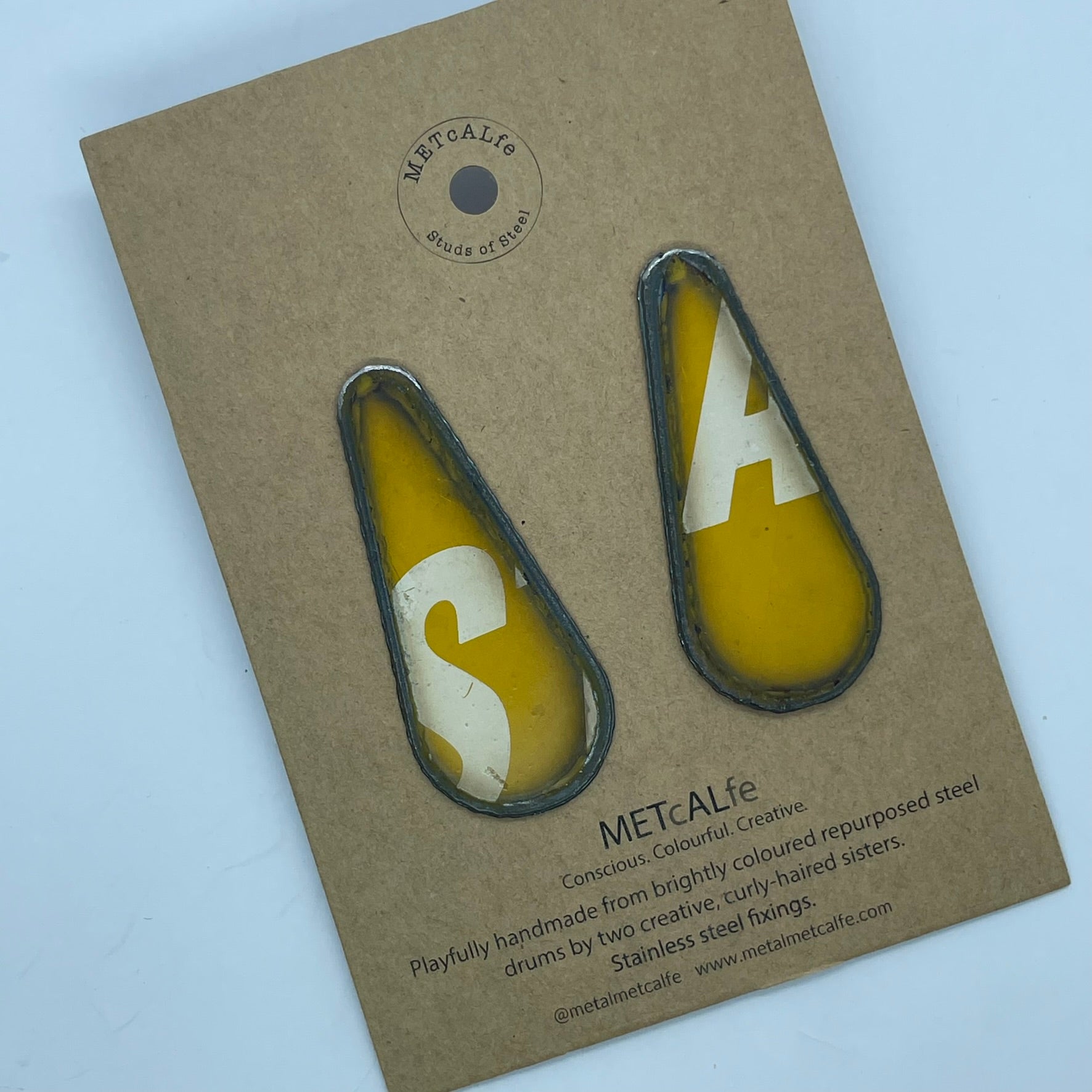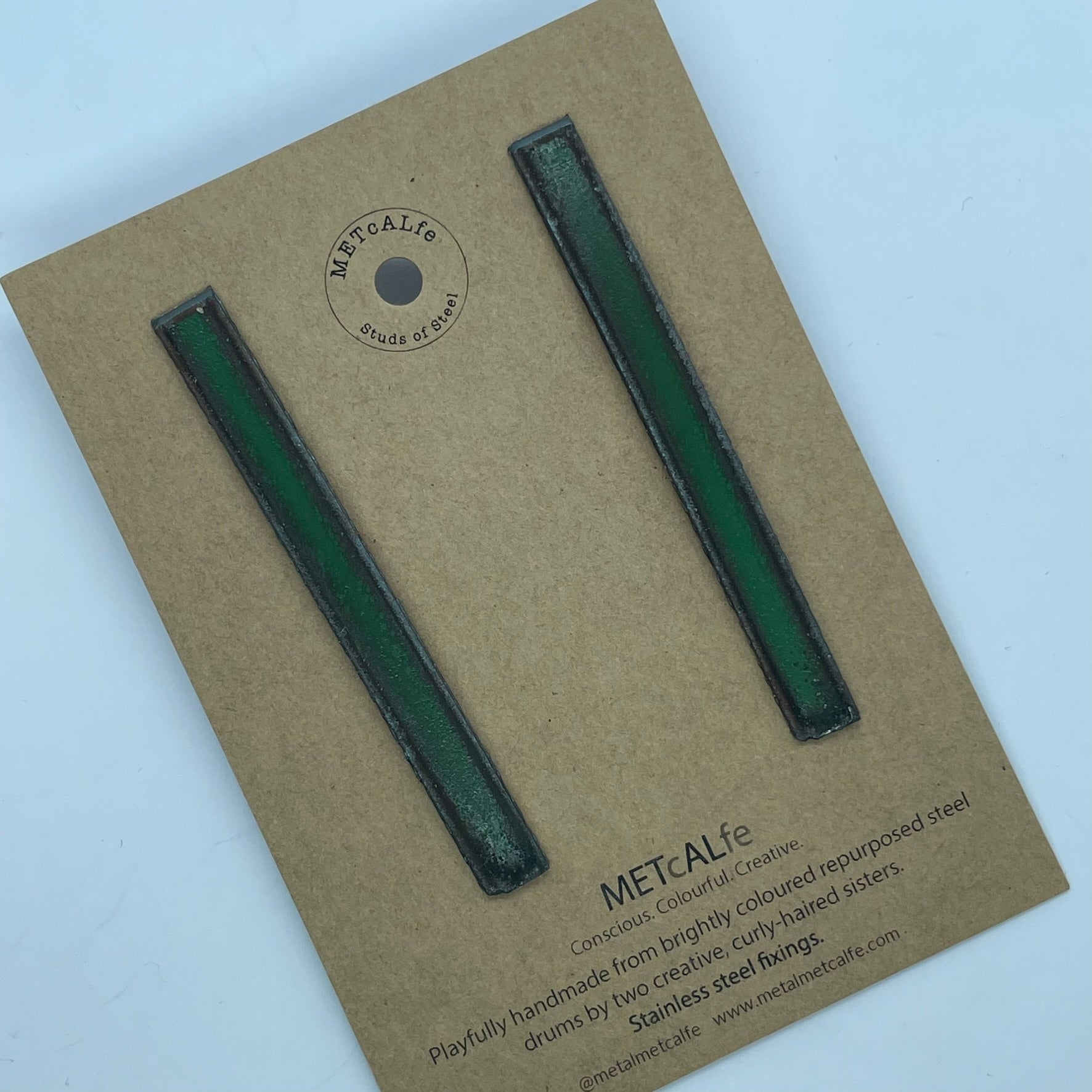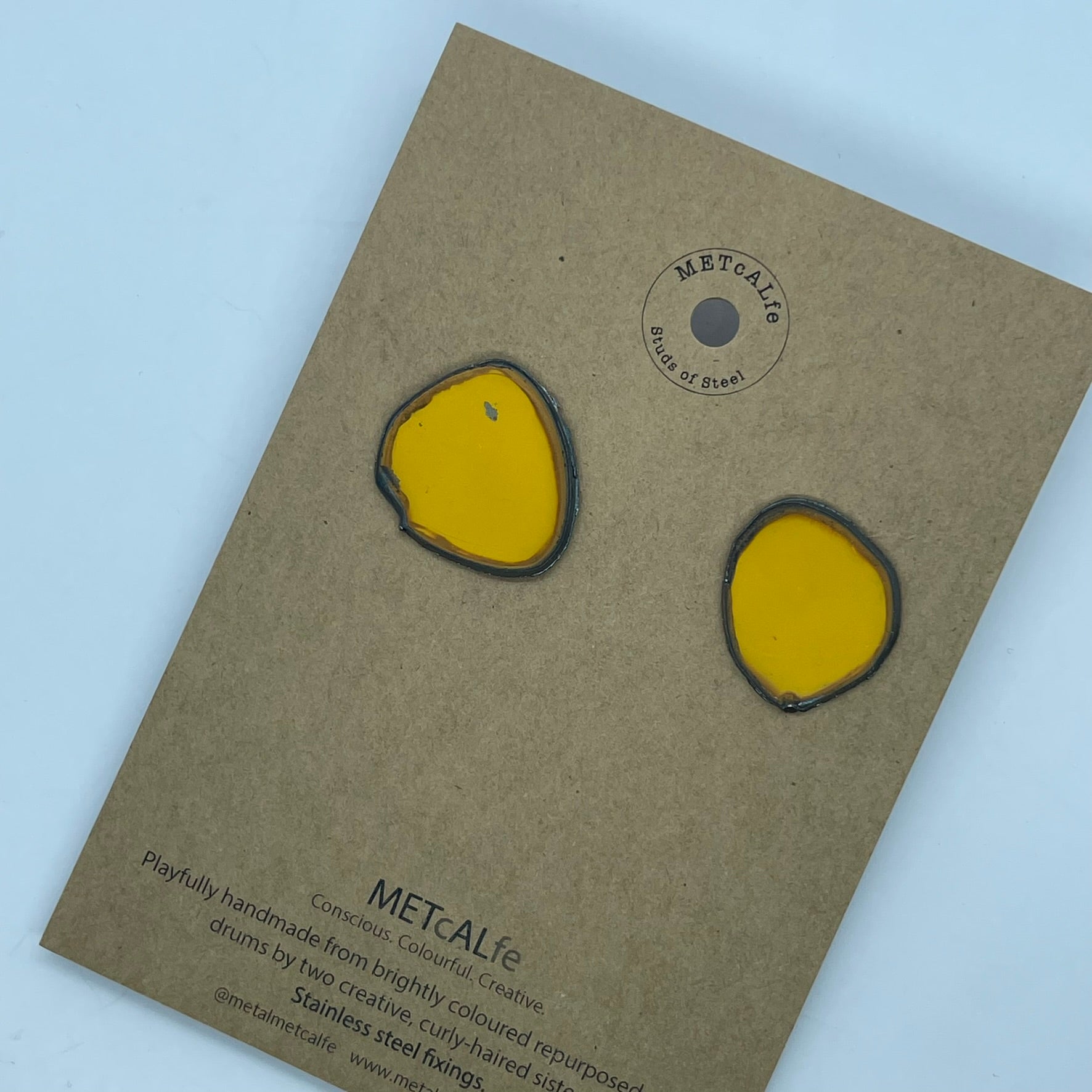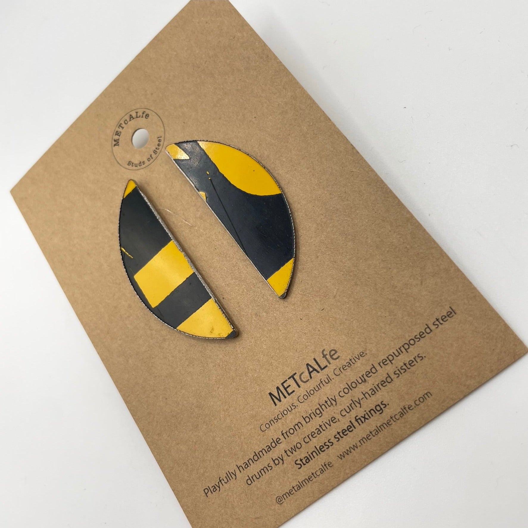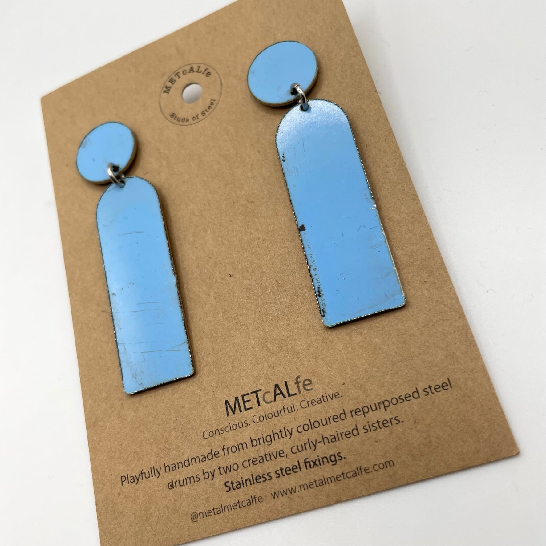 All the Studs of Steel are made by the Amy and Katie from our repurposed steel drums. These drums have travelled thousands of miles around our little planet, and ended up in Hawke's Bay, New Zealand where they give them a second life of travel...on your ears!