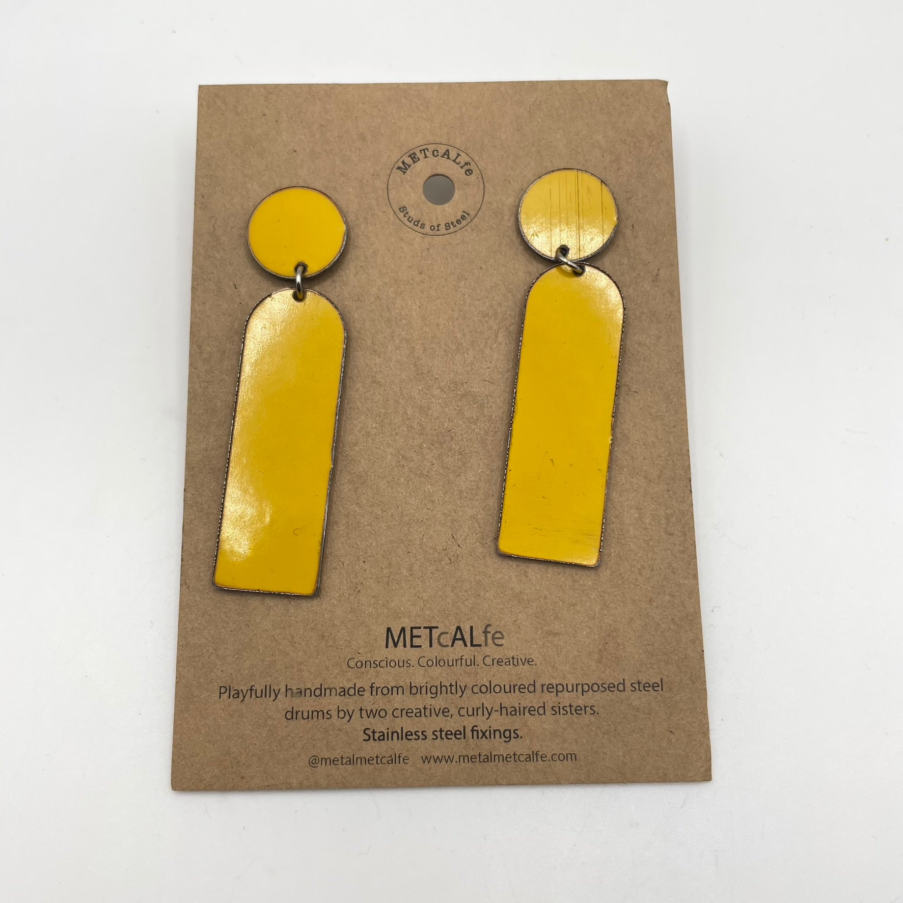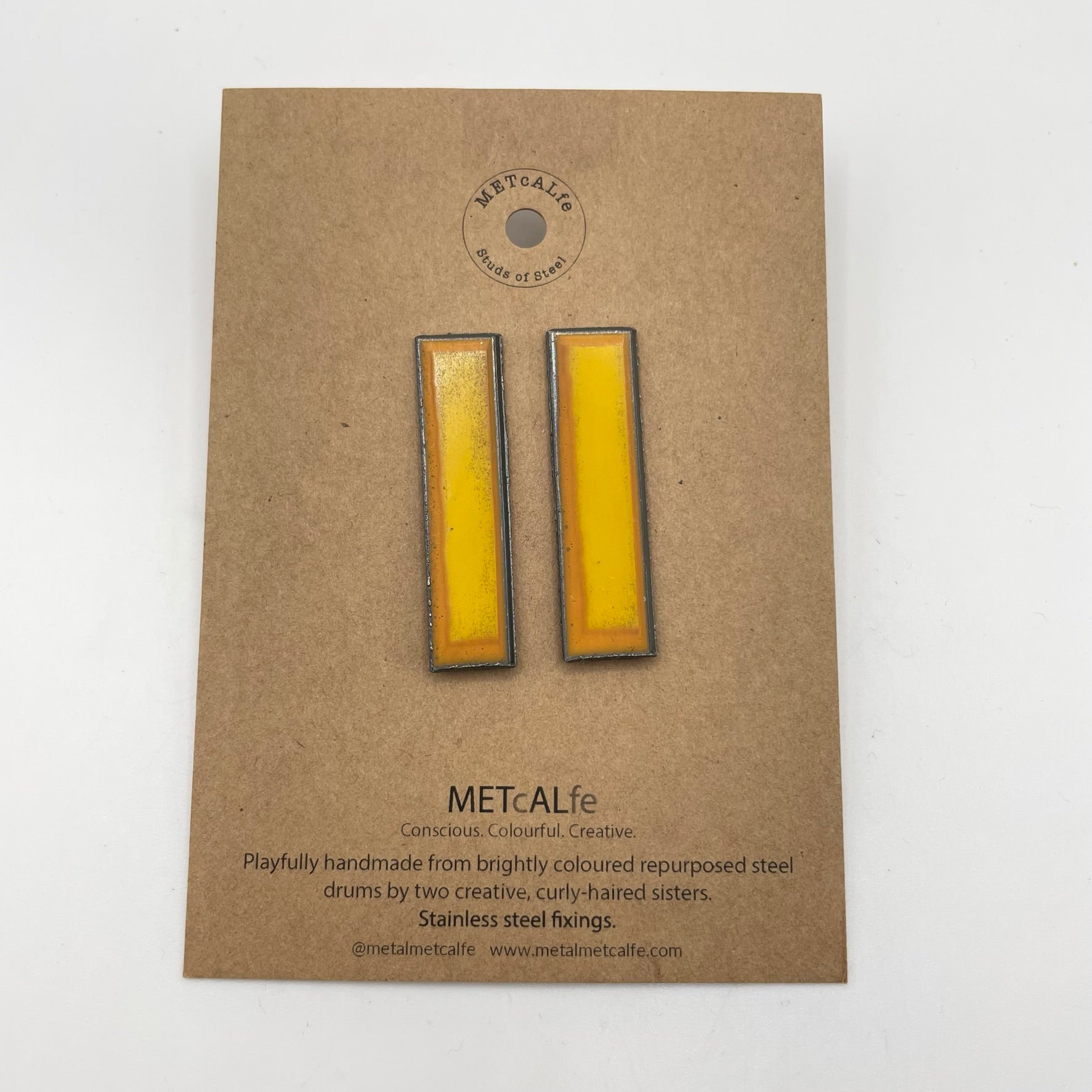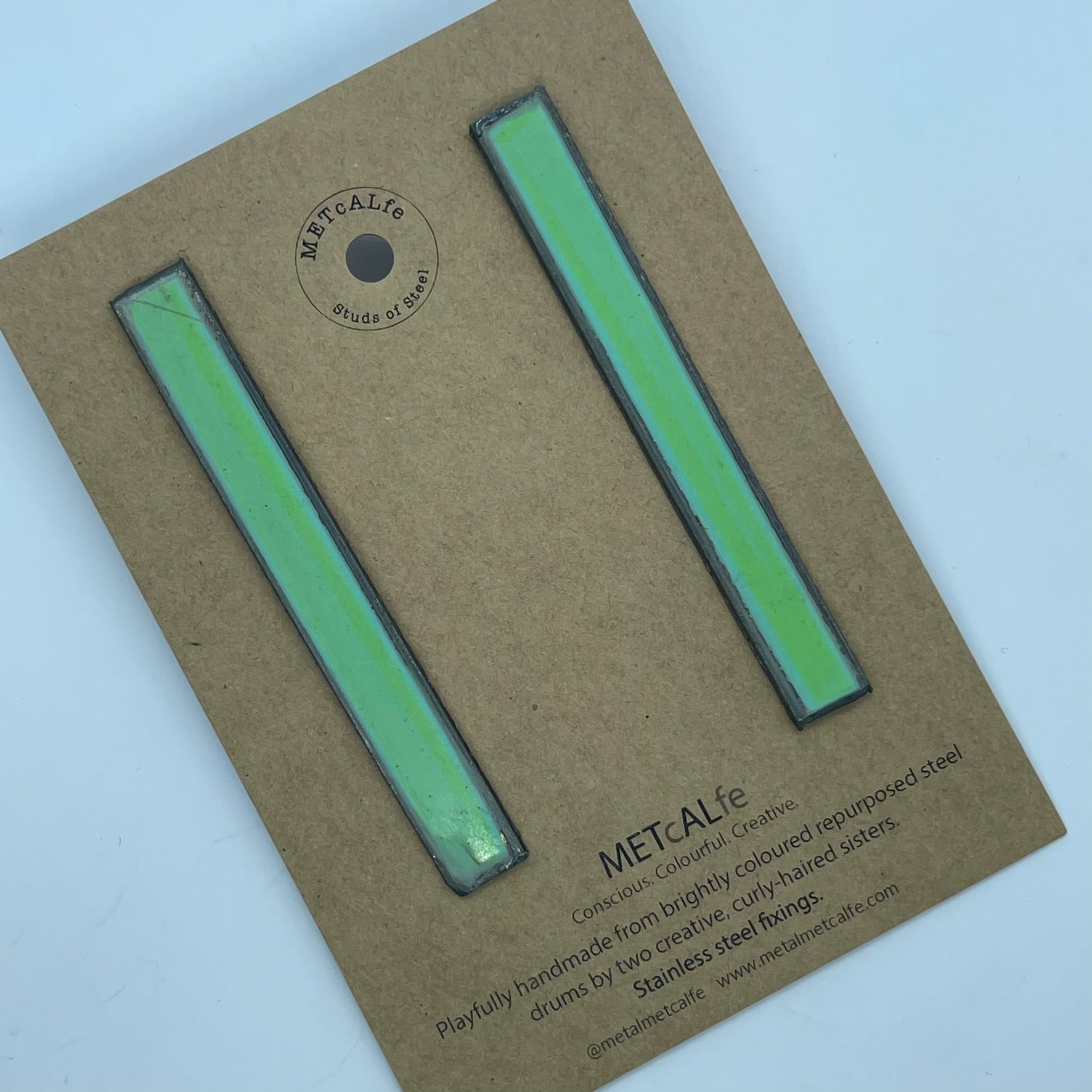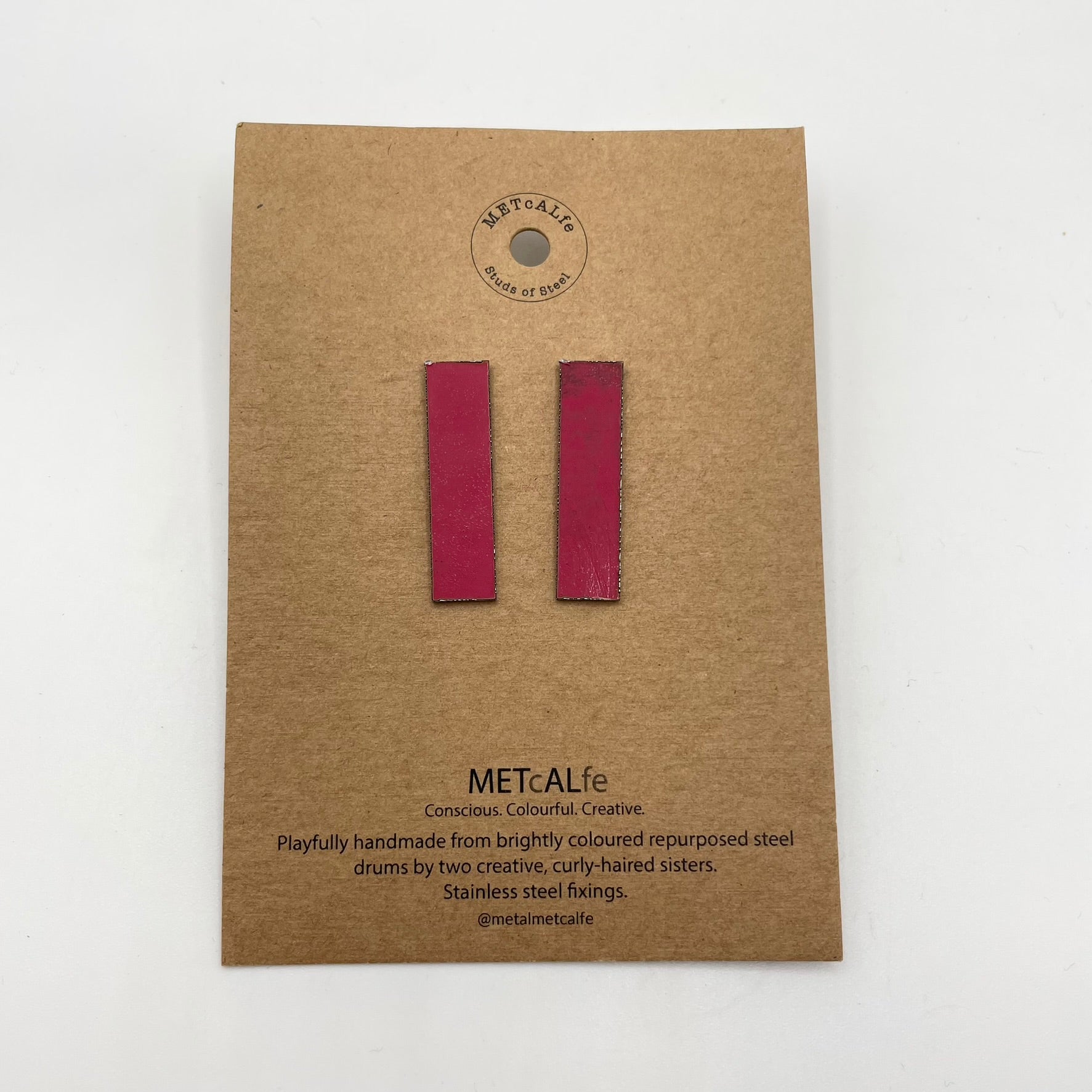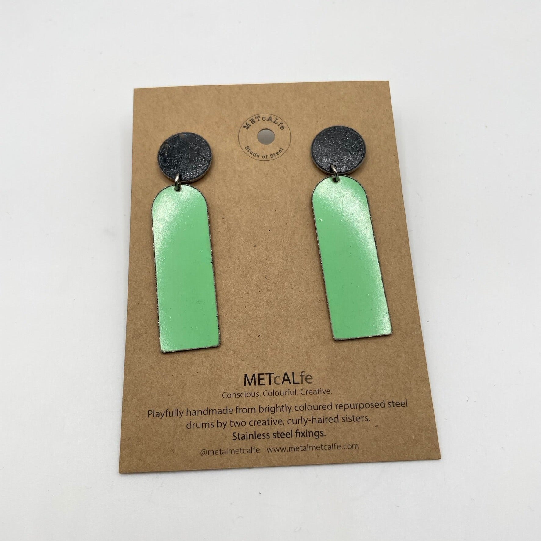 All the Studs of Steel are made by the Amy and Katie from our repurposed steel drums. These drums have travelled thousands of miles around our little planet, and ended up in Hawke's Bay, New Zealand where they give them a second life of travel...on your ears!