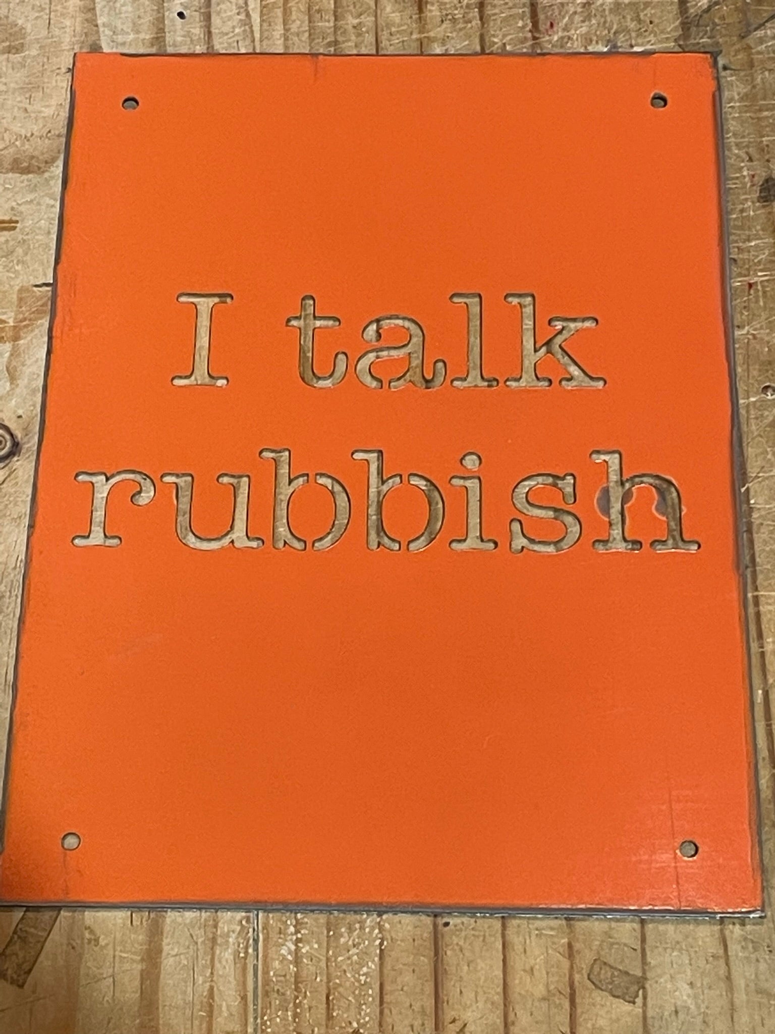 Scraches, dents and rust patches are all part of the honesty of the material Each artwork is therefore unique! The lettering is lazercut (except for 'rough') but the perimeter is hand cut. Some may come with branding/lettering if you're super lucky!