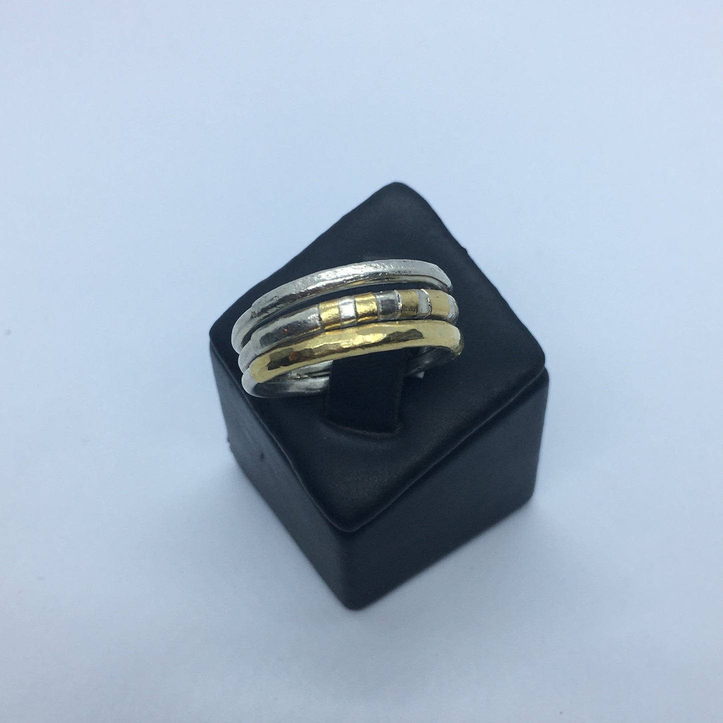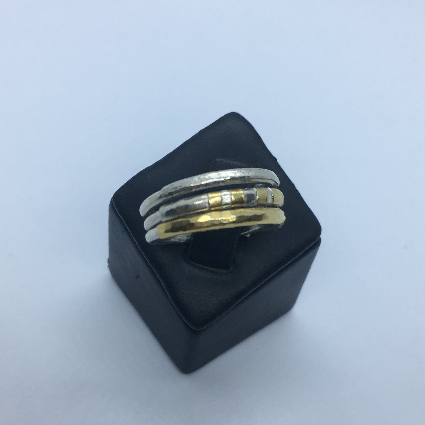 Triple Gold and Silver Ring by Invercargill jeweller, Janine Cairns-Michael.
